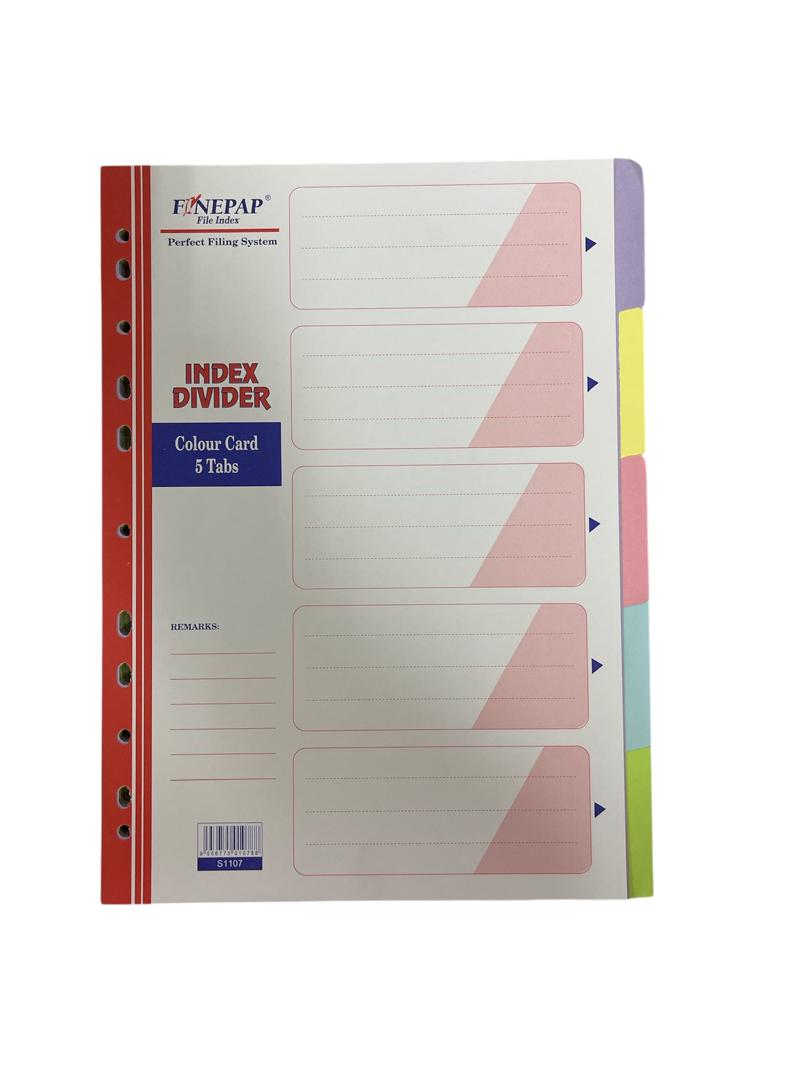 (S1107) Finepap File Index Divider Colour Card 5 Tabs