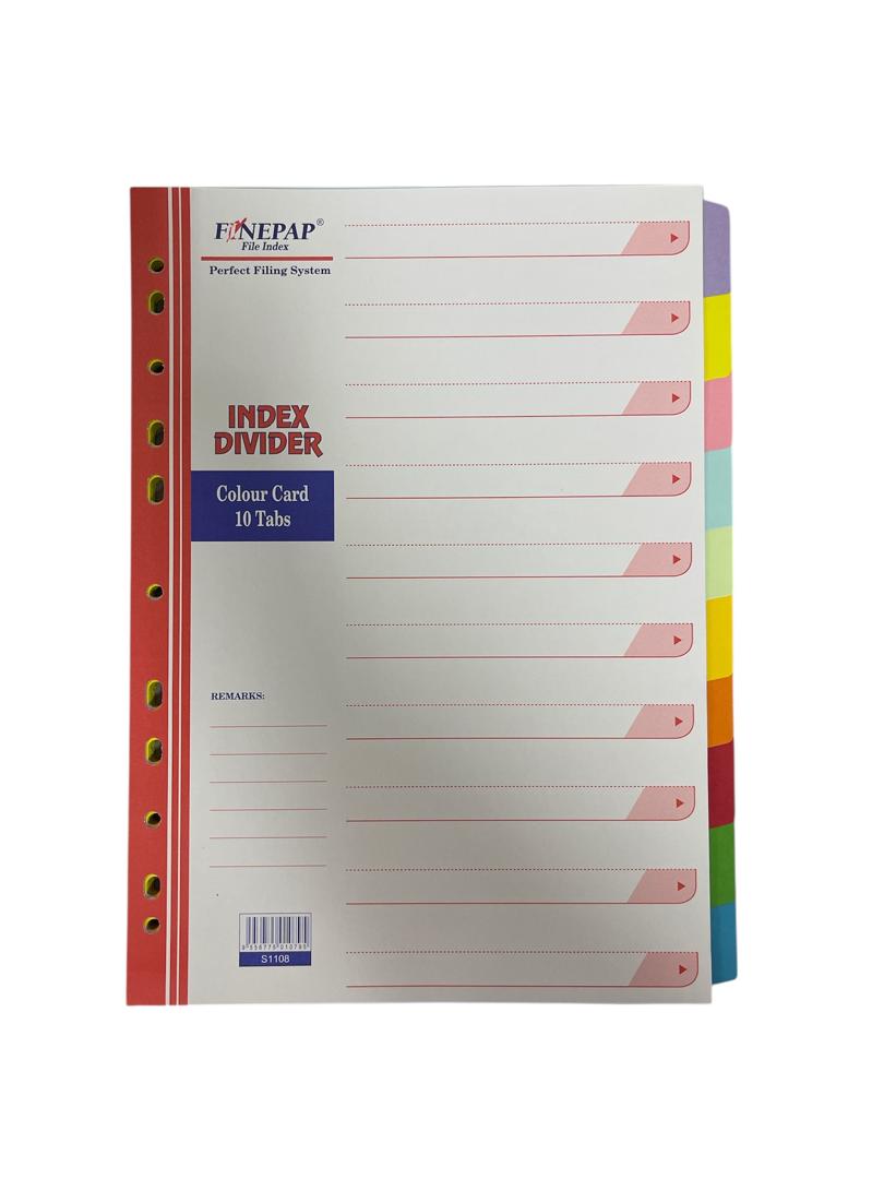(S1108) Finepap File Index Divider Colour Card 10 Tabs