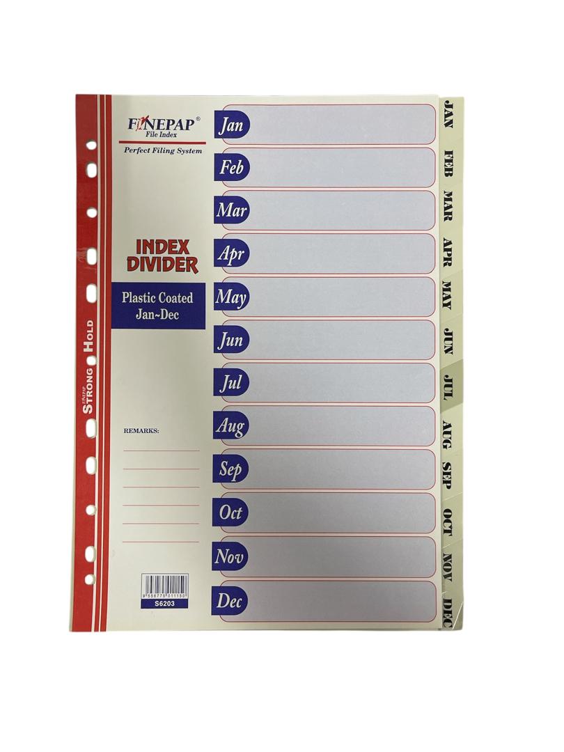 (S6203) Finepap File Index Divider Plastic Coated Jan-Dec