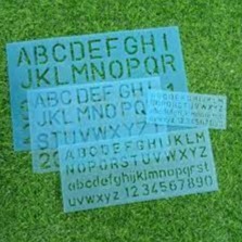 * Light blue alphabet stencil lettering PVC plastic ruler template isolated on white background. * This is an alphabet template ruler for the needs of students studying at school and for mechanical technicians